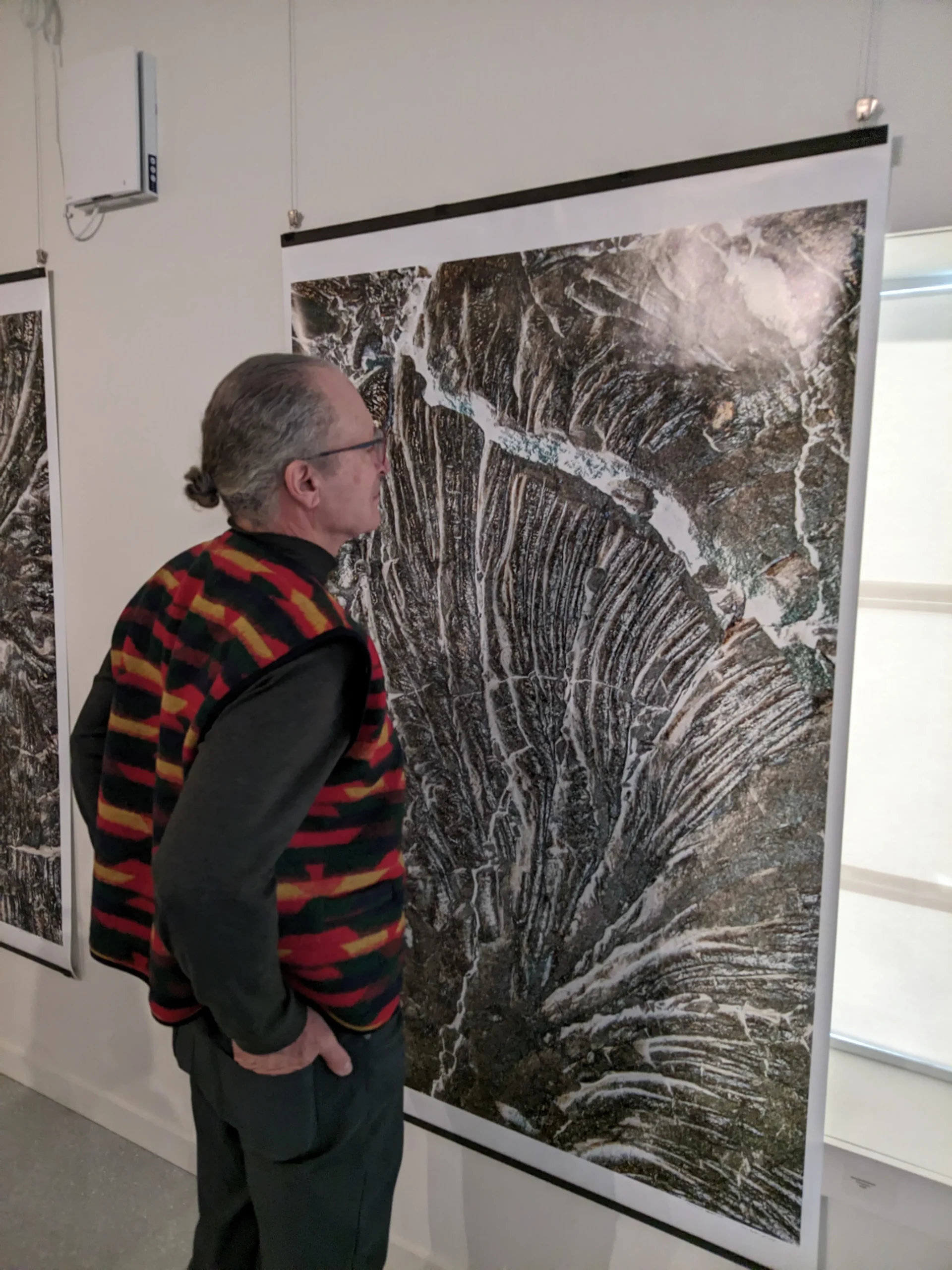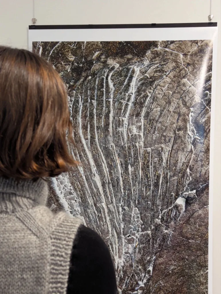 Here’s another interesting term: pareidolia, the human tendency to see recognizable patterns or faces in abstract shapes. Foster intentionally leans into this abstraction, allowing the viewer to dictate the narrative of each piece. He recalls how with his previous abstract photography work, he might perceive an intense scene of judgment, while someone else sees a figure quietly reading in a library. This subjectivity is central to the show, as Foster encourages visitors to engage with the “visual language” of the work and discover their own interpretations within the ancient, frozen textures of the stone.