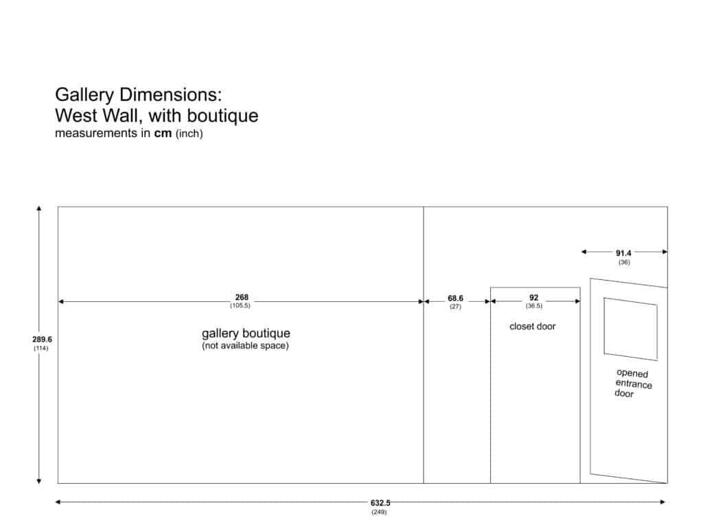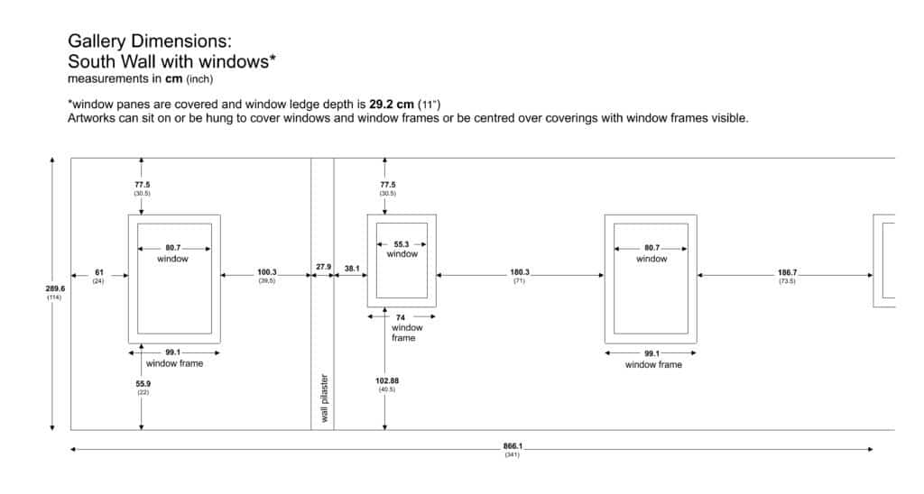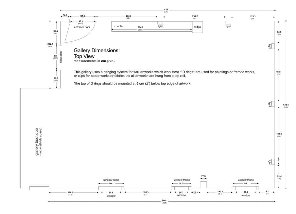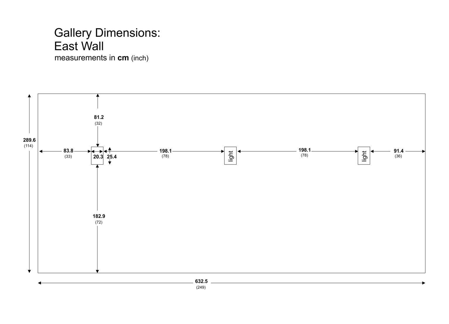 Dimensions to our Wakefield Gallery space, intended for artists and collaborators planning their events. Alternatively, consult this PDF.